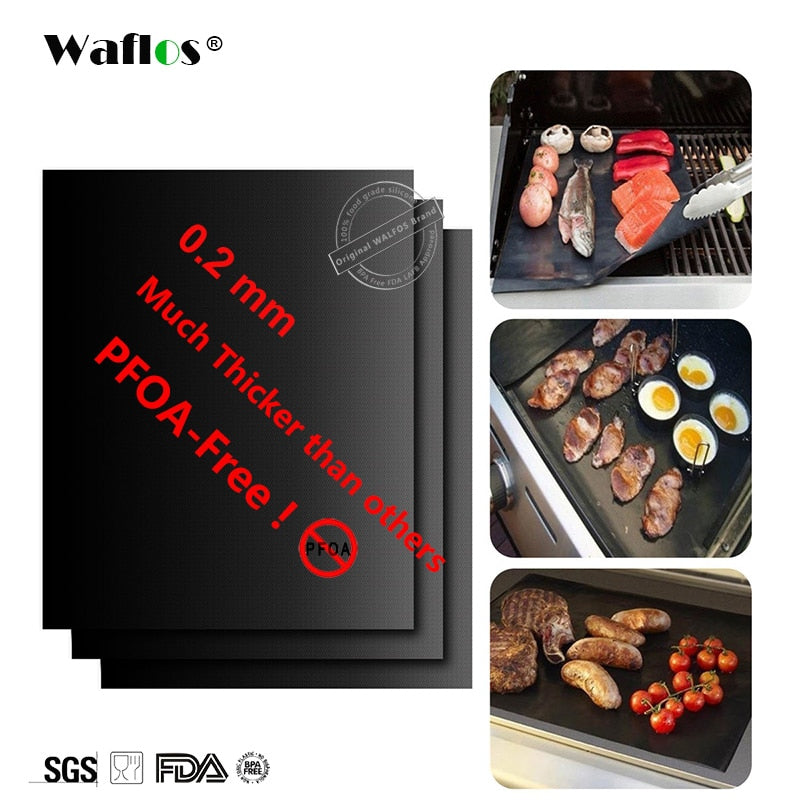 WALFOS Extra thick 0.2mm heat resistant teflon baking mat BBQ Grill Mat
